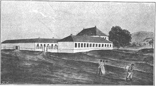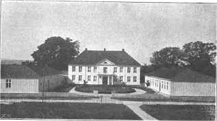 nye adhusbygninger. Akvarel paa Ulefos antagelig af Paul Linaae |